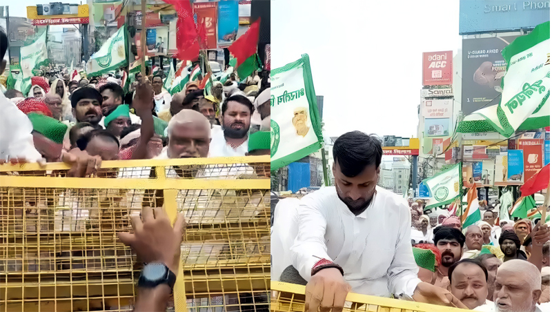पटना: सोमवार को पटना में संयुक्त किसान मोर्चा के नेतृत्व में 2,000 से ज्यादा किसानों ने मुख्यमंत्री आवास की ओर मार्च शुरू किया. प्रदर्शन का नेतृत्व बक्सर सांसद और किसान नेता सुधाकर सिंह ने किया. किसान बुद्धा पार्क से निकलकर पटना जंक्शन होते हुए डाकबंगला चौराहे तक पहुँचे, जहाँ पुलिस ने उन्हें बैरिकेडिंग के जरिए रोक दिया. किसान बैरिकेडिंग तोड़कर आगे बढ़ने की कोशिश कर रहे हैं, वहीं मौके पर भारी पुलिस फोर्स और वाटर कैनन तैनात है.