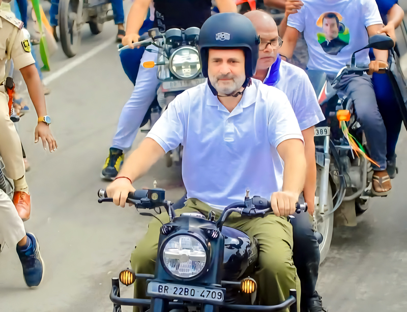 पूर्णिया: बिहार में वोटर अधिकार यात्रा का आठवां दिन रविवार को पूर्णिया से शुरू हुआ. इस अवसर पर राहुल गांधी बुलेट पर सवार नजर आए, उनके पीछे कांग्रेस प्रदेश अध्यक्ष राजेश राम बैठे थे. वहीं दूसरी बुलेट पर तेजस्वी यादव सवार थे, जिनके पीछे उनका बॉडीगार्ड मौजूद था. इस दौरान यात्रा में मुकेश सहनी, माले नेता दीपांकर भट्टाचार्य और कांग्रेस के राष्ट्रीय अध्यक्ष मल्लिकार्जुन खड़गे भी शामिल हुए. पूर्णिया के सांसद पप्पू यादव ने भी यात्रा में सक्रिय भाग लिया.