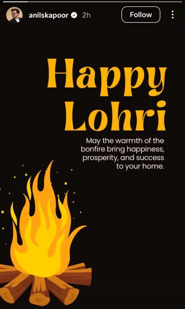 शिल्पा शेट्टी ने लिखा, “हैप्पी लोहड़ी! आपकी यह लोहड़ी जोरदार हंसी और परिवार के साथ ढेर सारी खुशी के पलों से भरी हो। यह एक नई शुरुआत है और आग सारी नेगेटिविटी को दूर ले जाए।” वहीं अनिल कपूर ने कहा, “आग की गर्मी आपके घर में खुशियां, समृद्धि और सफलता लाए।” दोनों सितारों के संदेशों ने त्योहार की रौनक बढ़ा दी।