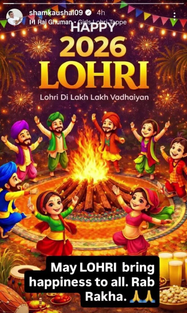 जैकी श्रॉफ, शाम कौशल और बिग बॉस 19 की कंटेस्टेंट अशनूर कौर ने भी लोहड़ी की बधाई दी। शाम कौशल ने लिखा, “यह लोहड़ी आपके जीवन में ढेर सारी खुशियां लाए।” इन सितारों के पोस्ट ने सोशल मीडिया पर लोहड़ी का अलग ही रंग भर दिया। फैंस भी कमेंट्स में अपनी खुशी जाहिर कर रहे हैं।
