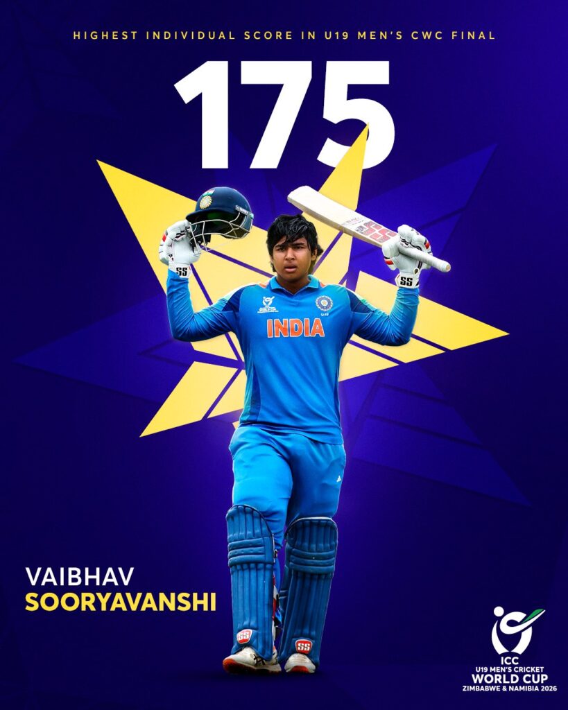 यह भी पढ़ें – U19 World Cup 2026 Final: Vaibhav Sooryavanshi का तूफानी शतक, इंग्लैंड 412 का लक्ष्य