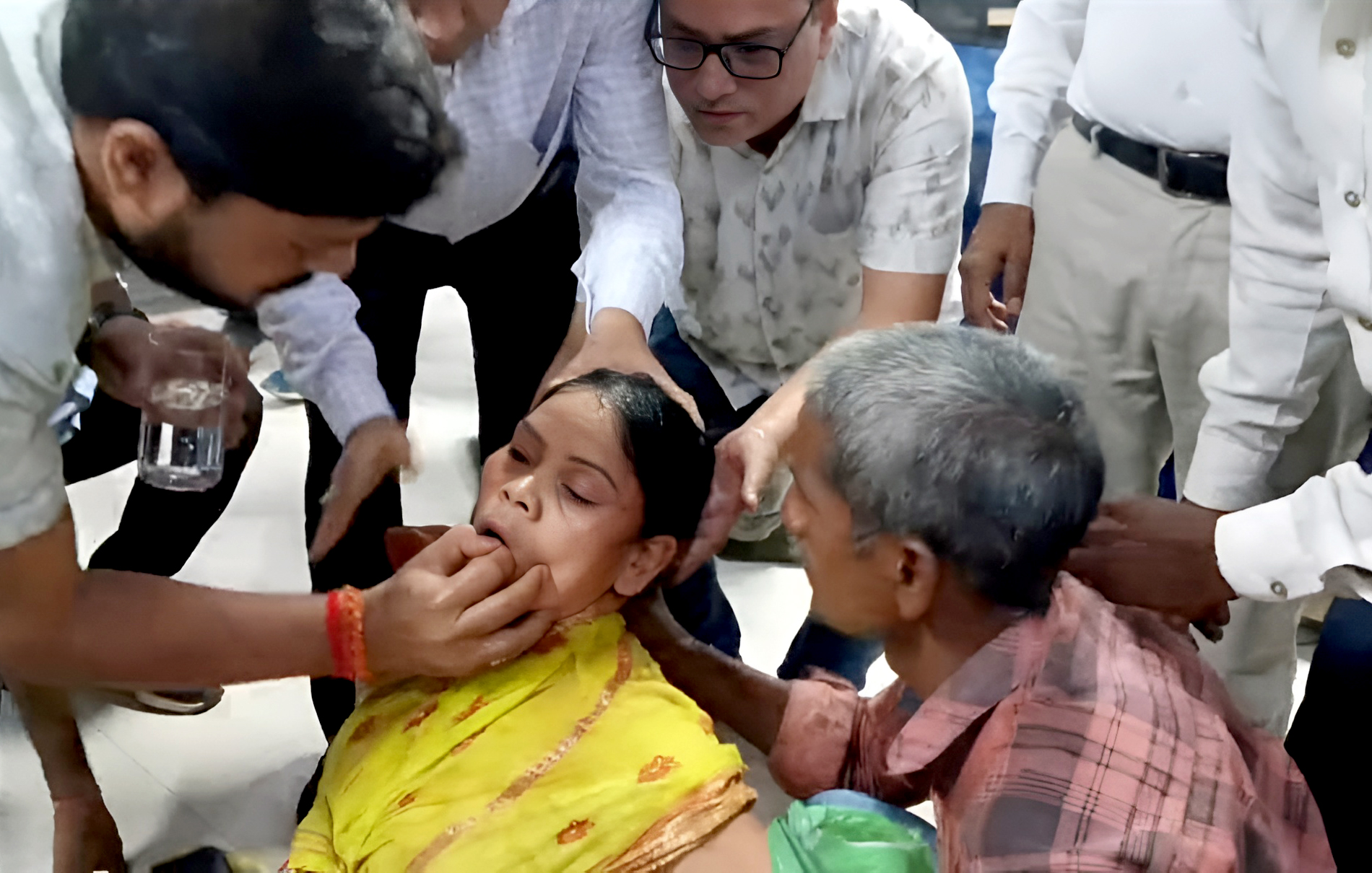 चेक वितरण के दौरान माहौल बेहद भावुक हो गया. जैसे ही एक पीड़ित महिला चेक लेने मंच पर पहुंची, वह अपने आंसू रोक न सकी और रोते-रोते बेहोश हो गई. मौके पर मानवीय संवेदनशीलता दिखाते हुए खुद जिलाधिकारी ने महिला को होश में लाने के लिए पानी के छींटे मारे और तत्काल चिकित्सा सुविधा मुहैया कराई.