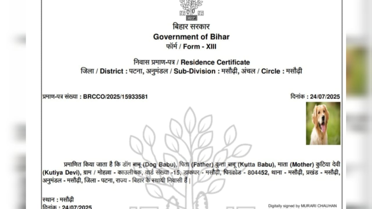 अंचलाधिकारी प्रभात रंजन ने कहा, “किसी ने ऑनलाइन आवेदन किया. सत्यापन के दौरान कर्मचारियों ने ध्यान नहीं दिया. इस कारण कुत्ते का प्रमाण पत्र बन गया. यह प्रशासनिक व्यवस्था का मजाक उड़ाने की कोशिश है.”