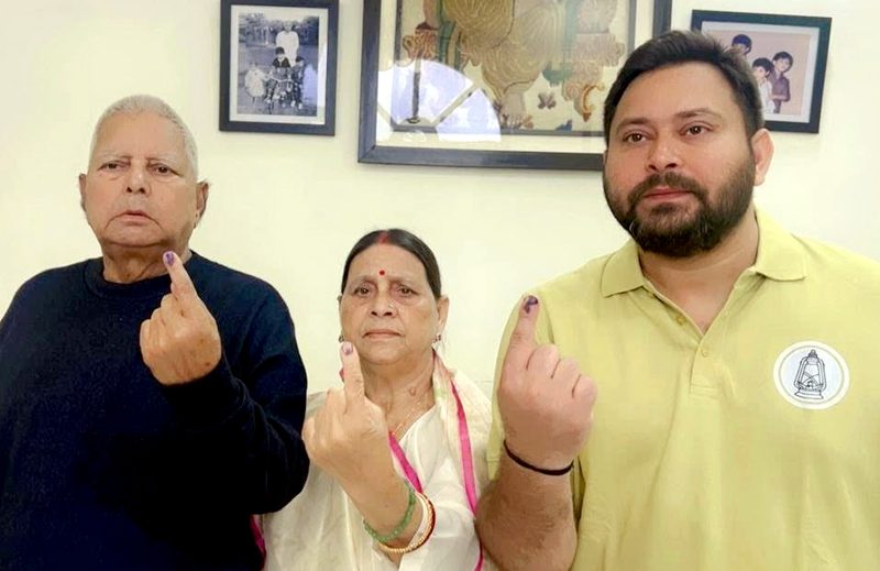 पटना के वेटनरी कॉलेज बूथ पर लालू प्रसाद यादव, राबड़ी देवी, तेजस्वी यादव और मीसा भारती ने अपने परिवार के साथ मतदान किया. राबड़ी देवी ने मीडिया से कहा, “मेरे दोनों बेटों को मेरा आशीर्वाद है. तेजप्रताप और तेजस्वी दोनों अपने बल पर चुनाव लड़ रहे हैं.” तेजस्वी यादव ने कहा, “बिहार को नया भविष्य चाहिए, जनता बदलाव के लिए तैयार है.”