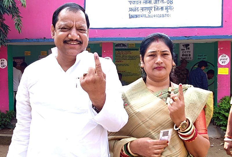 - तारापुर में जेडीयू विधायक राजीव कुमार सिंह ने पत्नी संग डाला वोट, बोले— “फिर बनेगी नीतीश कुमार की सरकार”