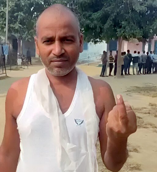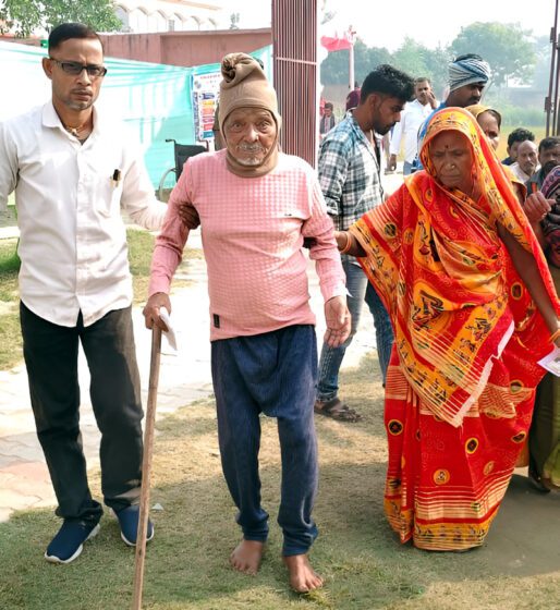 शिवहर विधानसभा के मतदान केन्द्र संख्या 166 पर मतदान करने पहुंचे 89 वर्षीय भोला राम