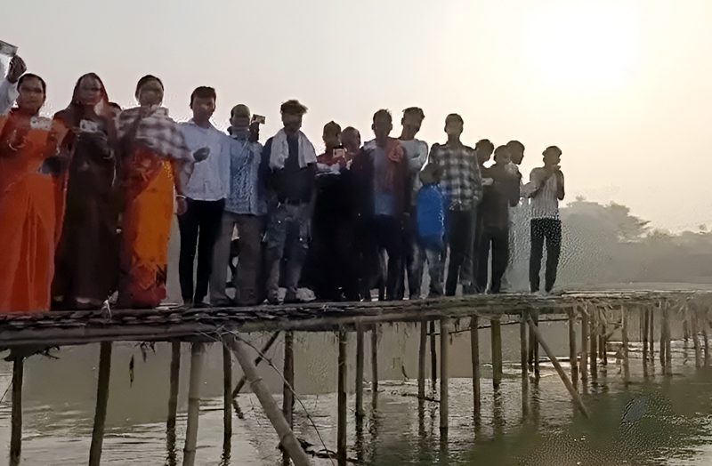 किशनगंज जिले के चिल्हनियां पंचायत के बूथ संख्या 80 पर मतदान के लिए मतदाताओं का जज़्बा देखने लायक है. यहां ग्रामीण सुहिया रेतुआ नदी पर बने अस्थायी चचरी पुल से होकर वोट डालने जा रहे हैं. नदी पर बने इस लकड़ी और बांस के पुल से गुजरना जोखिम भरा है, लेकिन मतदाताओं के हौसले को इससे कोई फर्क नहीं पड़ा. स्थानीय लोगों ने बताया कि हर साल बरसात में यह पुल बह जाता है और उसे दोबारा ग्रामीण ही मिलकर बनाते हैं. बावजूद इसके, लोकतंत्र के पर्व में हिस्सा लेने के लिए लोग सुबह से लाइन में लगे हैं.