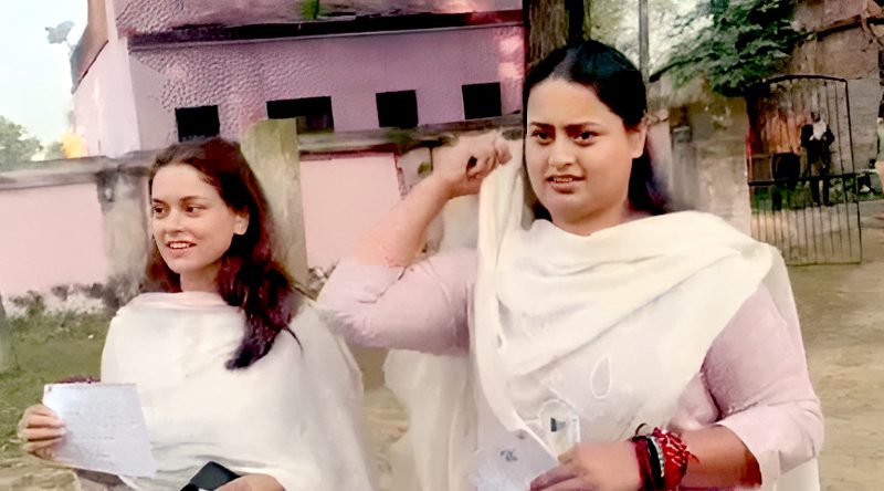 वोट देकर मतदान केंद्र से बाहर निकलती श्रेयसी सिंह