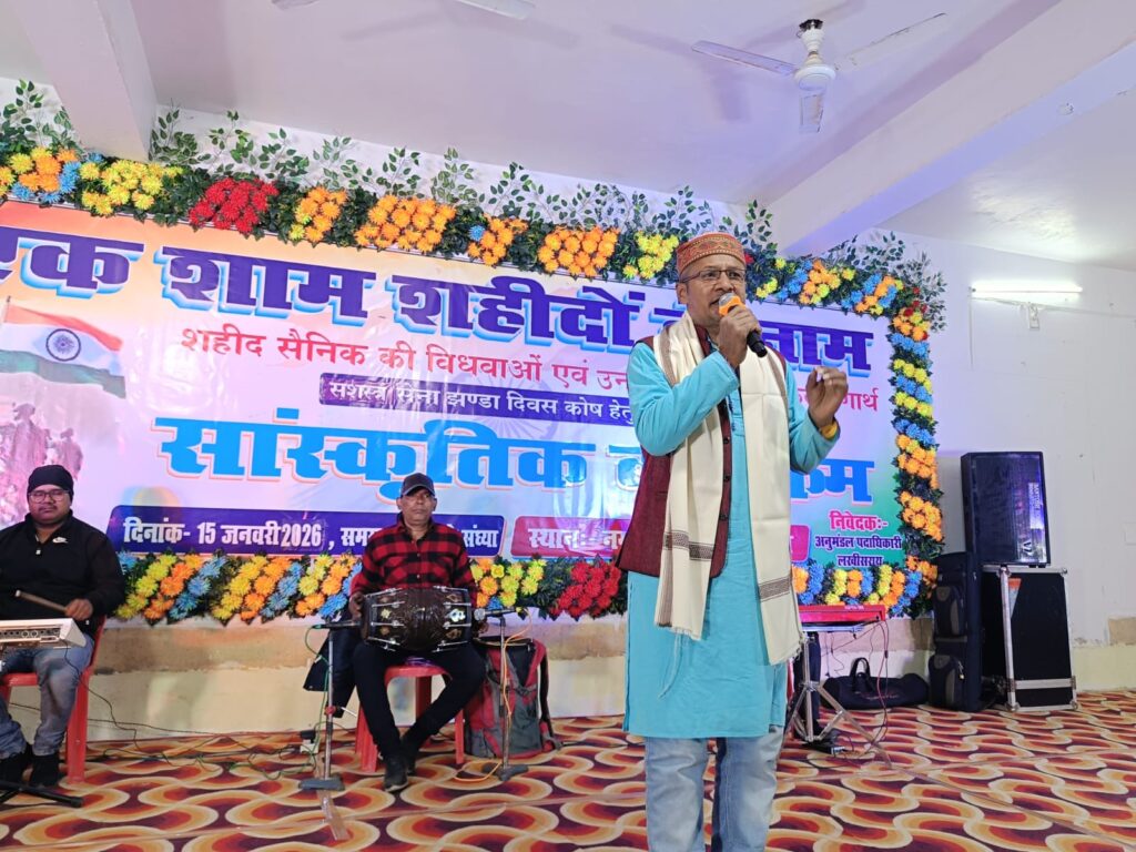 लखीसराय: जिला पदाधिकारी, लखीसराय मिथिलेश मिश्र की अध्यक्षता में सेवारत सैनिकों एवं भूतपूर्व सैनिकों तथा उनके आश्रितों से संबंधित समस्याओं के निराकरण हेतु जिला स्तरीय अनुश्रवण समिति की बैठक टाउन हॉल स्थित प्रशासनिक भवन में आयोजित की गई।इस अवसर पर जिला प्रशासन और पूर्व सैनिकों के बीच केआरके हाई स्कूल मैदान पर फैंसी बॉलीबॉल का आयोजन किया गया। इसके बाद डीएम मिथिलेश मिश्र,नगर परिषद सभापति अरविंद पासवान,पूर्व सैनिक एवं अधिकारियों द्वारा दीप प्रज्जवलित कर एक शाम शहीदों के नाम कार्यक्रम का आयोजन किया गया,जहां देश भक्ति एवं सेनाओं से जुड़े गीतों से नगर भवन गुंजायमान रहा।