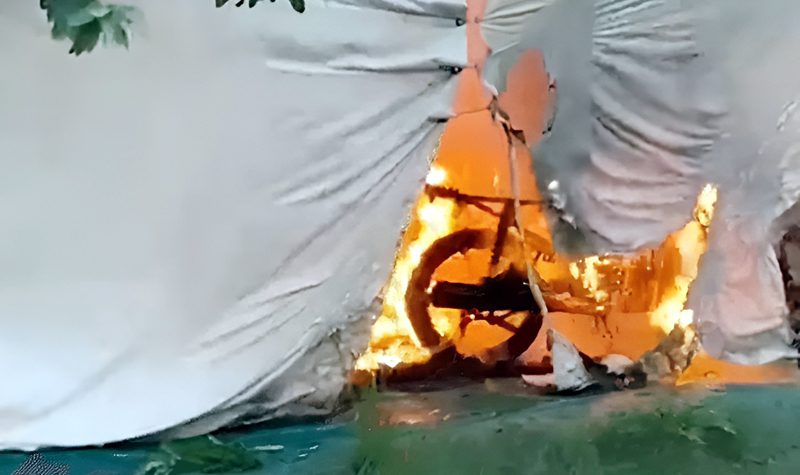 जनसुराज पार्टी के समर्थकों में इस घटना को लेकर नाराजगी है. पुलिस और अग्निशमन टीम ने मौके पर पहुंचकर जांच-पड़ताल शुरू कर दी है. समर्थकों का आरोप है कि कुछ लोगों ने साजिशन आग लगाई.
