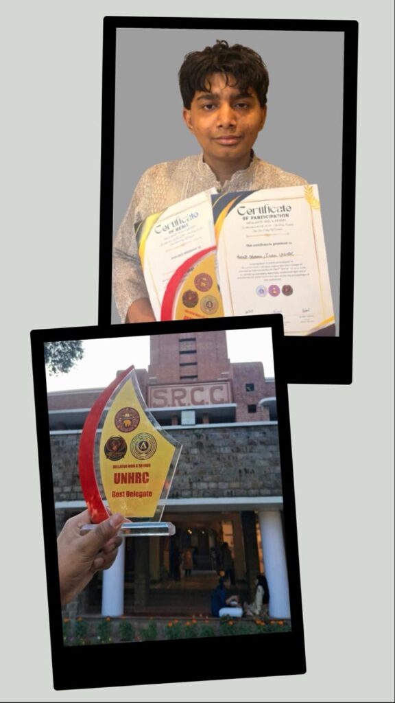 अंशित कुमार शर्मा ने न केवल अपने विद्यालय का प्रतिनिधित्व किया, बल्कि अपनी प्रभावशाली प्रस्तुति, गहन शोध और संतुलित तर्कों से निर्णायकों एवं प्रतिभागियों को प्रभावित किया. उन्होंने अंतरराष्ट्रीय मुद्दों पर हुई चर्चाओं में सक्रिय भागीदारी निभाई और अपनी कूटनीतिक समझ का उत्कृष्ट प्रदर्शन किया.