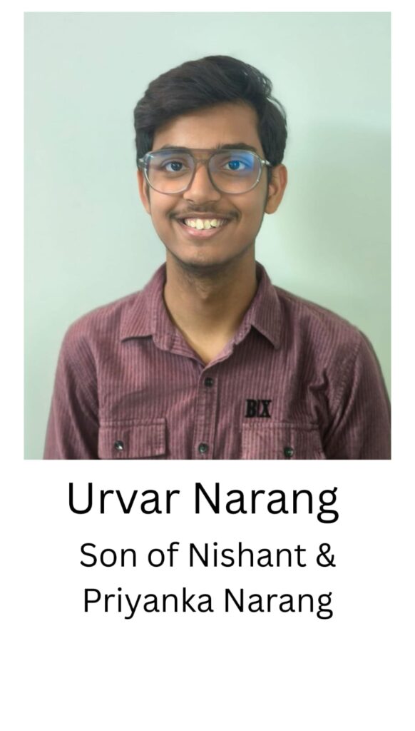 • उर्वार नारंग: नचिकेता स्कूल, कक्षा 8। निशांत नारंग और प्रियंका नारंग के सुपुत्र।