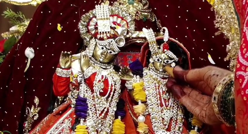 विवाह की सभी रस्में पूर्णतः वैदिक रीति-रिवाजों के साथ संपन्न हुईं। सबसे भावुक पल तब आया जब ठाकुर जी और ठकुरानी जी ने एक-दूसरे को जयमाला पहनाई। इसके बाद सात फेरों की रस्म शुरू हुई, जिसमें इन्द्रेश उपाध्याय ने अपने लाडले गिरधर लाल को और उनकी पत्नी शिप्रा ने श्रीराधा रानी को गोद में लेकर अग्नि के समक्ष सात फेरे लिए। ठाकुर जी ने लाड़ली जी की मांग में सिंदूर भरा, जिसे देख उपस्थित जनसमूह भाव-विभोर हो उठा।