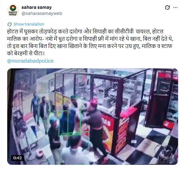 ठाकुरद्वारा में काशीपुर रोड स्थित इंडियन रेस्टोरेंट में बड़ी घटना सामने आई । कस्बा इंचार्ज सुरेंद्र कुमार और सिपाही रजत ने होटल के स्टाफ और मालिक के साथ मुफ्त का खाना को लेकर मारपीट कर दी।
