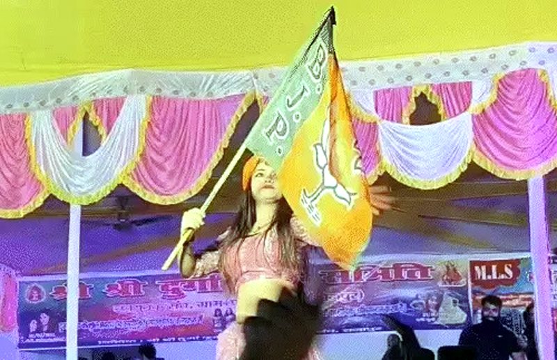 आरा: दुर्गा पूजा के अवसर पर भोजपुर जिले के राजापुर गांव (बबुरा थाना क्षेत्र) में आयोजित सांस्कृतिक कार्यक्रम में डांसर…